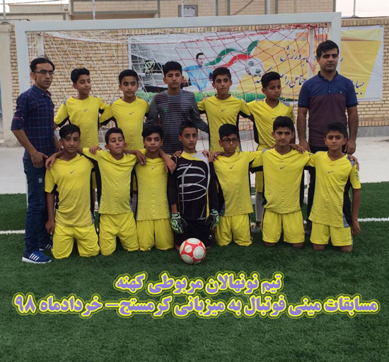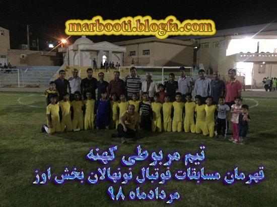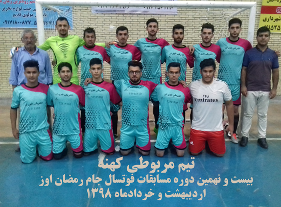 اسامی بازیکنان و کادرفنی تیم مربوطی کهنه (قهرمان مسابقات) سرپرست : عارف حاجی پور سرمربی: سعید صادق پور مربی: عبدالرزاق خوشبخت بازیکنان : میعاد خادمی(کاپیتان) ،عرفان اکبری، آرمین زمانی ، محمد فیروزی(محمدنور) ، آرش زمانی ،محمدنبی نبوی، محمد احمدی(اسحاق) ، عدنان اکبری ، حامد صابری ، محمد عبدی(عبداله) ، احسان صابری ، ماجد عبدی ، یوسف محمودی، محمد حاتمی(محمدشریف) ، شعیب عبدی ، حمید حاتمی(رسول)