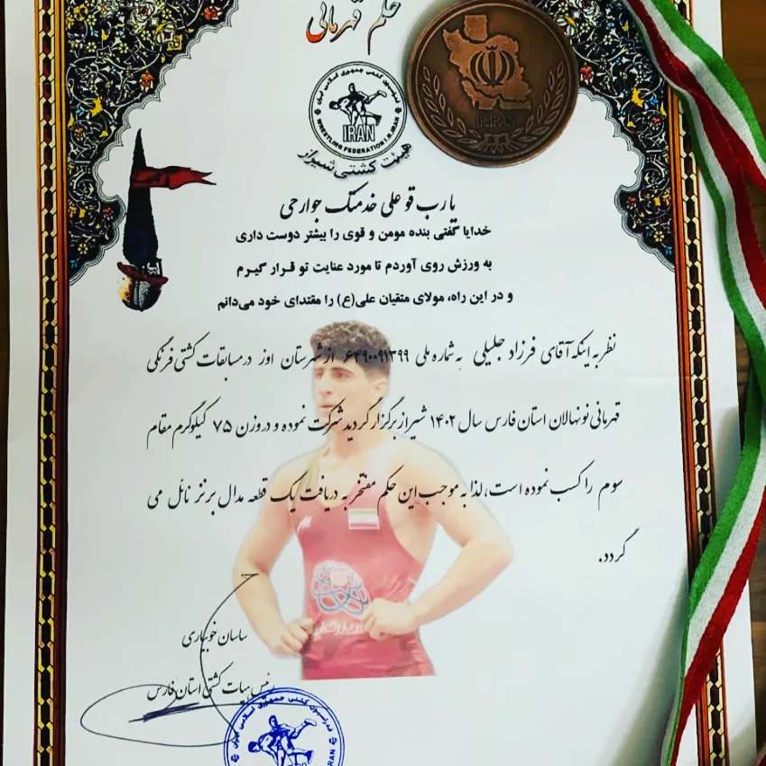 این موفقیت را به آقای فرزاد جلیلی، خانواده محترمشان و جامعه ورزش شهرستان اوز مخصوصا رشته کشتی شهرستان تبریک عرض نموده و برایشان آرزوی سلامتی و موفقیت های بیشتر را داریم . |