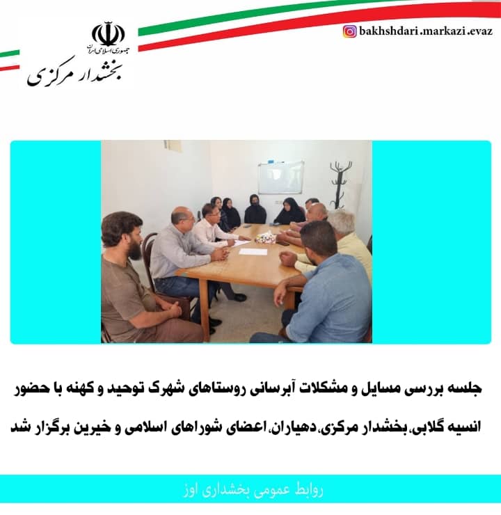 جلسه بررسی مسایل و مشکلات آبرسانی روستاهای شهرک توحید و کهنه با حضور انسیه گلابی،بخشدار مرکزی،دهیاران،اعضای شوراهای اسلامی و خیرین برگزار شد بخشدار مرکزی در این جلسه گفت:امروز مهمترین رسالت ما خدمت رسانی مطلوب به مردم است و ما موظف هستیم تا قبل از شروع مشکلات آب در مناطق روستایی همه توان مجموعه مدیریتی خود را جهت رفاه حال مردم بکار گیریم . انسیه گلابی افزود:با توجه به رشد منطقه نیازمند سرمایه گذاری بیشتر در تعویض شبکه آب رسانی و همچنین ترمیم شبکه فرسوده هستیم. بخشدار بر فرهنگسازی رسانهها و مسئولان و دهیاران و شوراهای اسلامی در خصوص مصرف بهینه آب به ویژه در مناطق روستایی وشهری تاکید کرد. در این جلسه مقرر شد ساخت اتاقک چاه دوم برکه گلشا با همکاری هیات آب و مشارکت اداره آبفا جهت نصب تابلو برق همچنین کف شکنی چاه مربوط و برکه گلشا و از مدار خارج کردن خط انتقال قدیمی توسط اداره آبفا انجام پذیرد. |