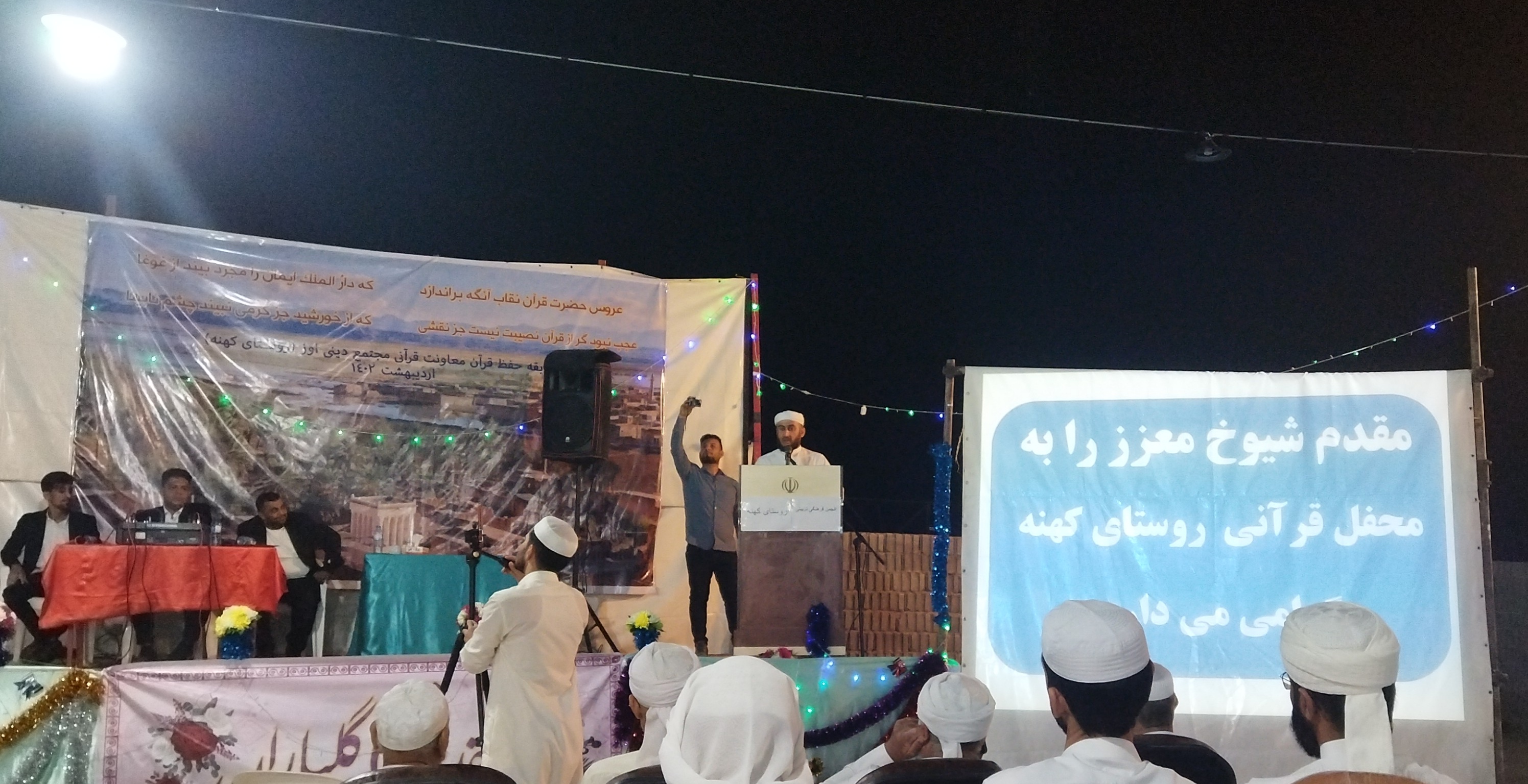 شیخ علی وطن خواه، امام جمعه روستای کهنه، ضمن خیر مقدم خدمت مسئولین و حاضرین، ابراز امیدواری نمود که روستای کهنه بتواند میزبان خوبی برای این مراسم باشد. شیخ علی وطن، مردمان روستای کهنه را، مردمانی قرآن خوان از زمان های قدیم تاکنون معرفی و آرزو نمود که این اُنس با قرآن در نسل های بعدی هم باقی بماند. شیخ علی در پایان اعلام نمود جمعا ۵۷ قرآن آموز در رده کودکان ۱۴ پسر، ۲۴ دختر، در رده متوسط ۸ دانش آموز و بزرگسالان ۱۳ نفر مشغول یادگیری اصولی قرآن زیر نظر ده مربی در مکتبخانه ها هستند. بیست و یک نفر توفیق حفظ کامل قرآن کریم را زیر نظر هشت مربی حفظ، کسب نموده اند. چهار حلقه تلاوت قرآن به تعداد ۴۵ قرآن خوان برادران و پنج حلقه از قاریان بانوان، صد نفر از خواهران به صورت منظم و با برنامهریزی در مساجد و منازل مشغول تلاوت قرآن می باشند.