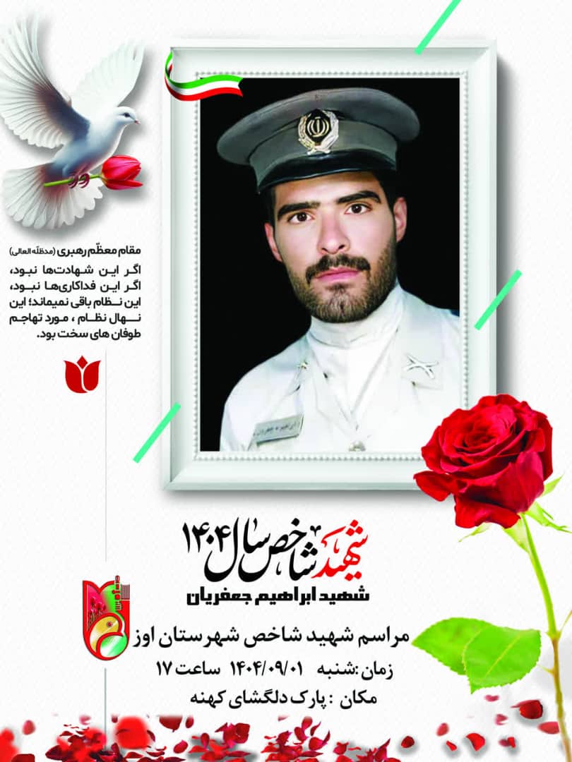 آیین گرامیداشت شهید شاخص سال ۱۴۰۴ شهرستان اوز، شهید ابراهیم جعفریان، روز شنبه ۱ آذرماه ۱۴۰۴ ساعت ۱۷ در پارک دلگشای روستای کهنه برگزار میشود. این مراسم با حضور خانوادههای معظم شهدا، مسئولان شهرستان و اقشار مختلف مردم همراه خواهد بود. شهید ابراهیم جعفریان، فرزند محمدحسین، متولد ۳۰ فروردین ۱۳۴۷ و از اهالی روستای کهنه است که در تاریخ ۲۱ تیرماه ۱۳۶۷ در منطقه فکه به درجه رفیع شهادت نائل آمد. معرفی ایشان بهعنوان شهید شاخص سال ۱۴۰۴ شهرستان اوز، فرصتی برای بزرگداشت مجاهدتها و فداکاریهای این شهید والامقام است. مقام معظم رهبری با تأکید بر نقش بنیادین ایثارگریها در پایداری نظام اسلامی میفرمایند: «اگر این شهادتها نبود؛ اگر این فداکاریها نبود، این نظام باقی نمیماند ; این نهال نظام , مورد تهاجم طوفانهای سخت بود.» این مراسم با هدف زنده نگه داشتن فرهنگ ایثار و شهادت و انتقال این ارزشها به نسلهای آینده برگزار خواهد شد. |